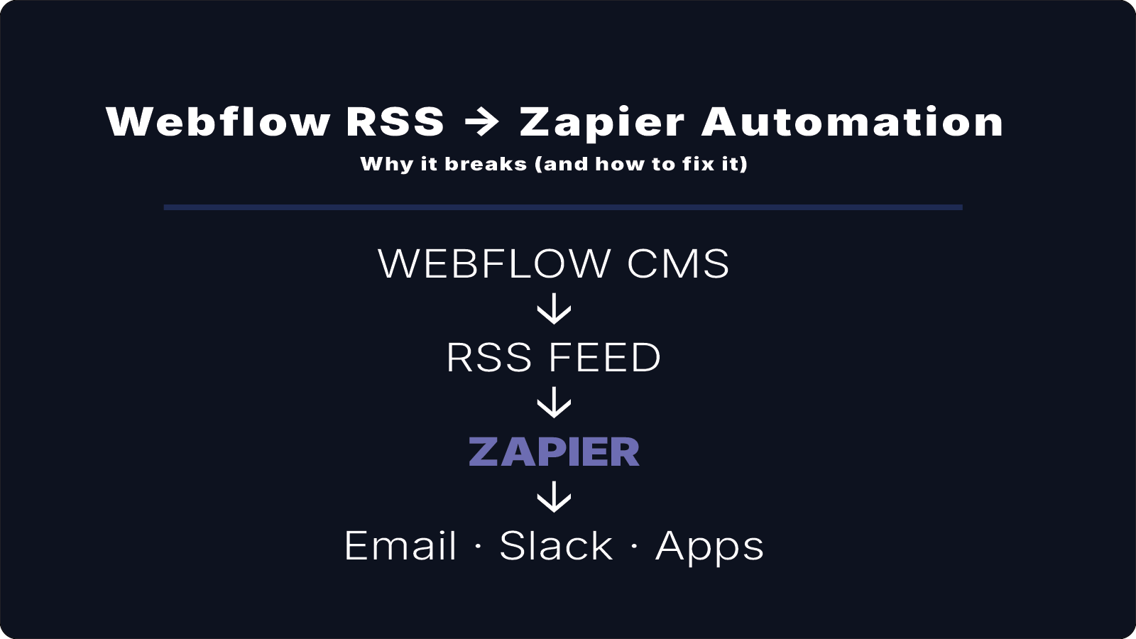 Webflow CMS↓WebflowRSS↓Full-Content RSS Feed↓Zapier↓Email / App / Automation